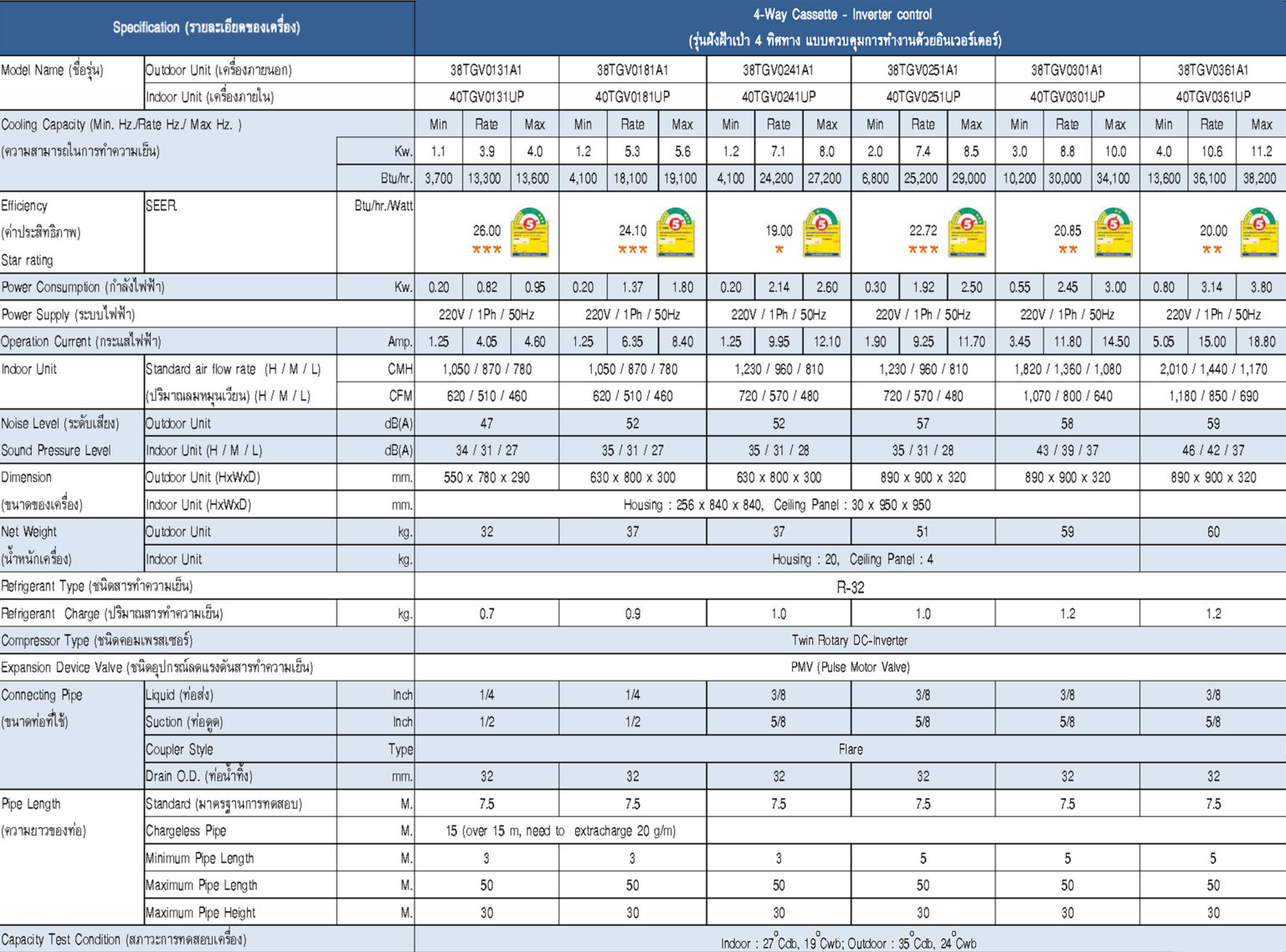 *อ้างอิงจากฉลากประหยัดพลังงานเบอร์ 5 โดยการไฟฟ้าฝ่ายผลิตแห่งประเทศไทย (กฟผ.)