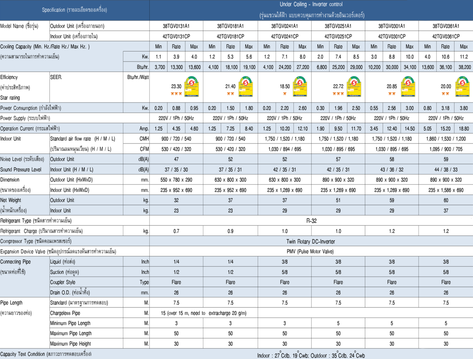 *อ้างอิงจากฉลากประหยัดพลังงานเบอร์ 5 โดยการไฟฟ้าฝ่ายผลิตแห่งประเทศไทย (กฟผ.)